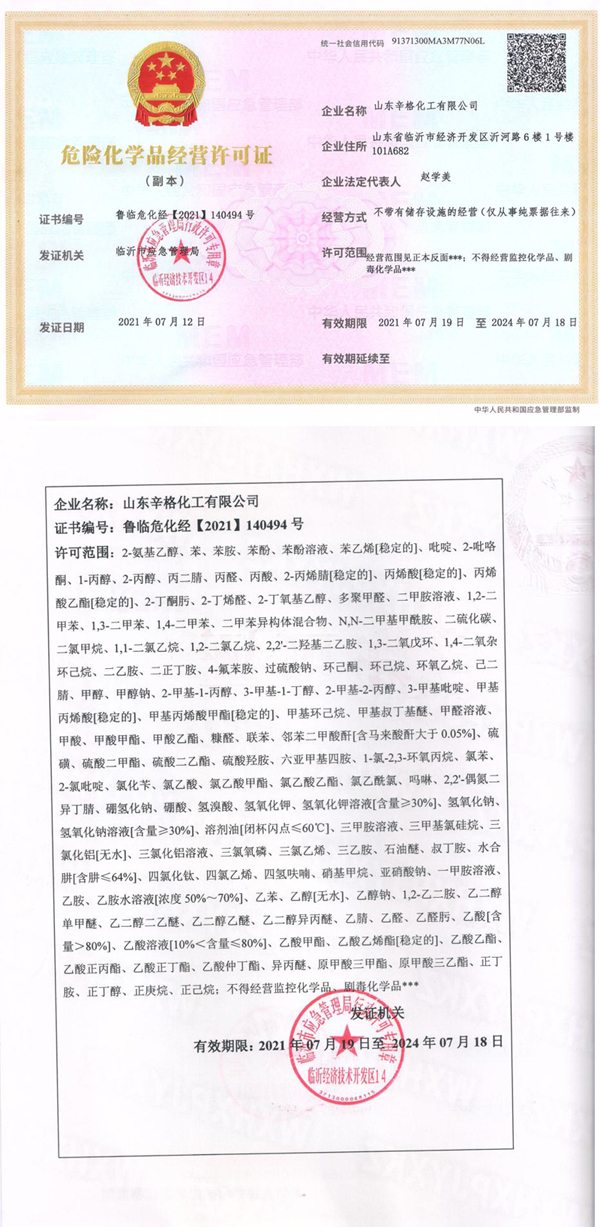 山東辛格化工有限公司前身為始建于2009年的“辛格溶劑”,于2018年變更為山東辛格化工有限公司。位于全國物流中心--山東省臨沂市經開區危化品交易市場,現在山東臨沂、淄博、河北滄州、江蘇南京、江陰設有專業倉庫。擁有專業的液體化工運輸物流,專注于經營各類普通化學品和危險化學品。